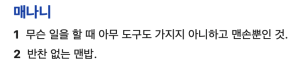 다음의 예를 보자. "매나니"라는 단어의 사전적 의미는 이렇다.