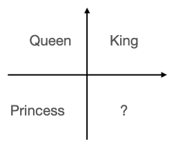 간단한 예를 들자면, King, Queen, Princess가 위의 그림과 같이 벡터 공간에 표현이 되어있을 때,