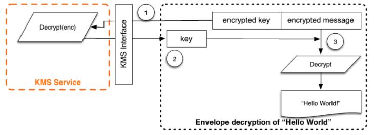 KMS에서 제공하는 봉투 암호화를 사용했다면, 암호화 시 사용하였던 Data Key를 요청하여 데이터를 복호화할 수 있다.