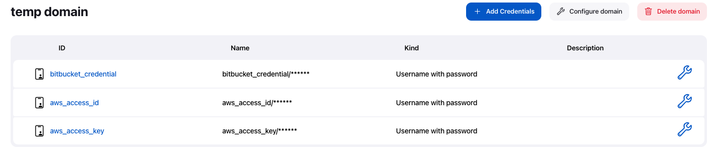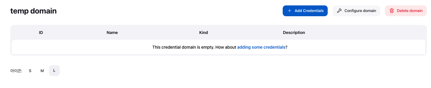 그런 다음, Credential들의 그룹이라고 할 수 있는 Domain을 하나 생성한다.