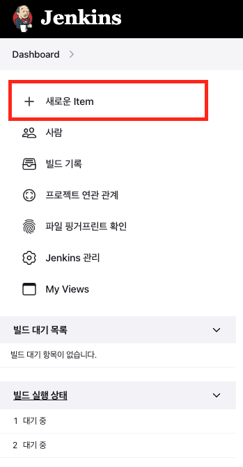 Jenkins 첫 화면으로 돌아가서 "새로운 Item"을 클릭한다.