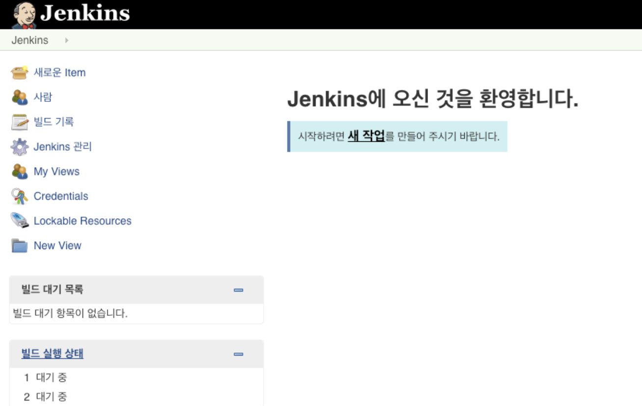 해당 작업이 끝나고 나면 Jenkins 초기화면을 다음과 같이 만날 수 있다.